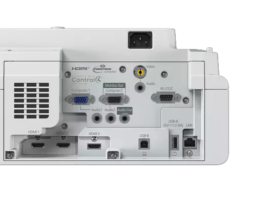 | Características | Modo pizarra, EPSON Quick Corner, fusión de bordes, Split Screen, Crestron RoomView, Modo DICOM, Control4 Certified, Direct Power On/Off, Extron IPLink, Cinema Mode, Presentation Mode, apagado automático, compatibilidad con cámara de documentos, obturador LCD RGB, Modo Dinámico, modo usuario. |